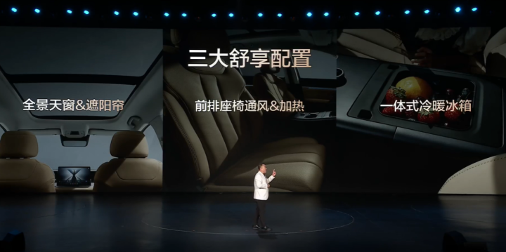 当然,打动我的不光是续航和油耗。发布会上提到的一体式智能冷暖冰箱,夏天给孩子存点冷饮,冬天为爱人温一杯热牛奶,想想都觉得温馨。再加上前排座椅的通风加热和带遮阳帘的全景天窗,舒适性配置直接拉满。