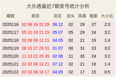 大乐透最近7期奖号和数据分析表