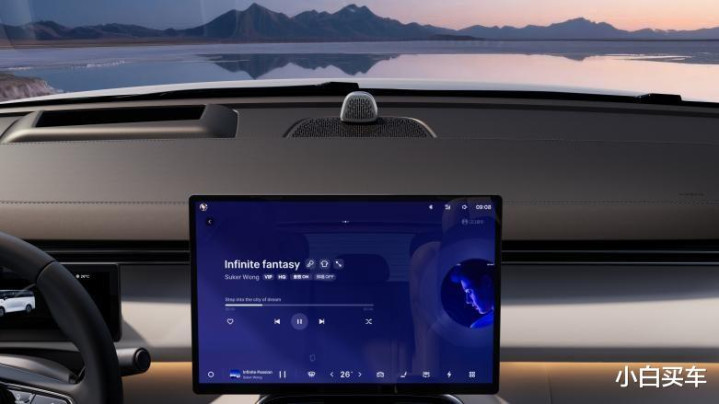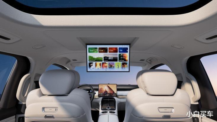 此外,车内配备健康三温区新风系统,负氧离子浓度达10万个/cm³,搭配天然花草香氛系统,营造森林氧吧级清新环境;前风挡及一二排夹胶玻璃搭配38处空腔隔断、200处噪声传递路径优化,配合EOC主动降噪技术,打造图书馆级静谧座舱。