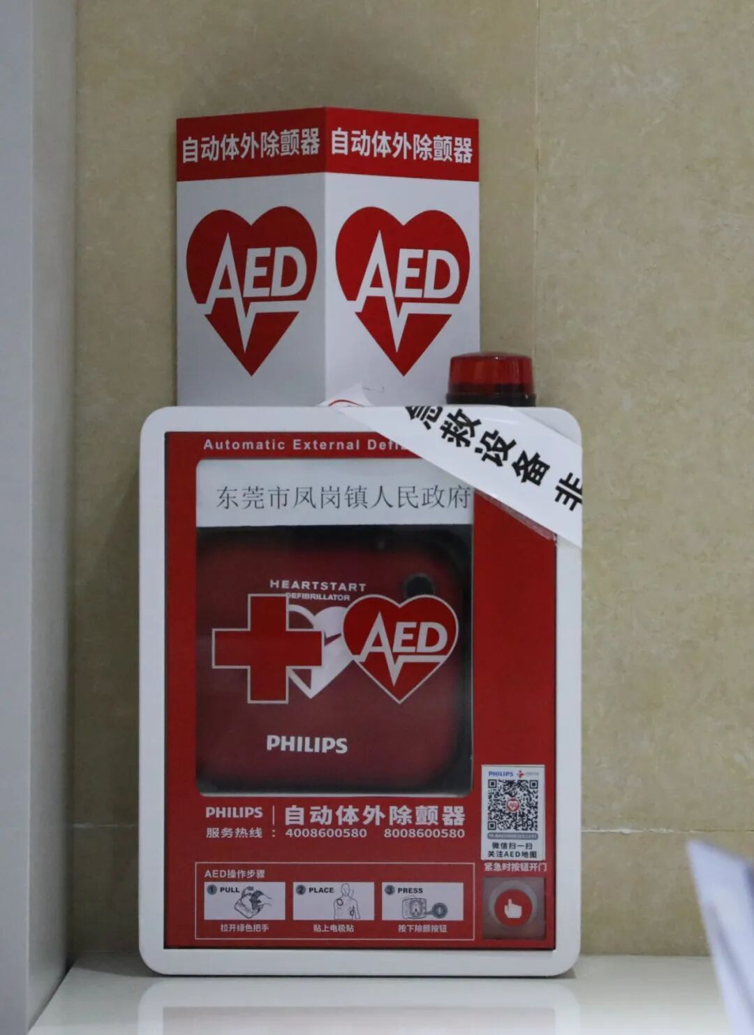 近年来,凤岗镇持续推进自动体外除颤器(AED)的布设与急救技能培训工作。目前,全镇已在文体场馆、商业中心、学校等多类人流密集场所配置AED设备,逐步搭建起覆盖广泛、反应快速的公共急救网络,为心搏骤停患者争取宝贵的“黄金四分钟”。