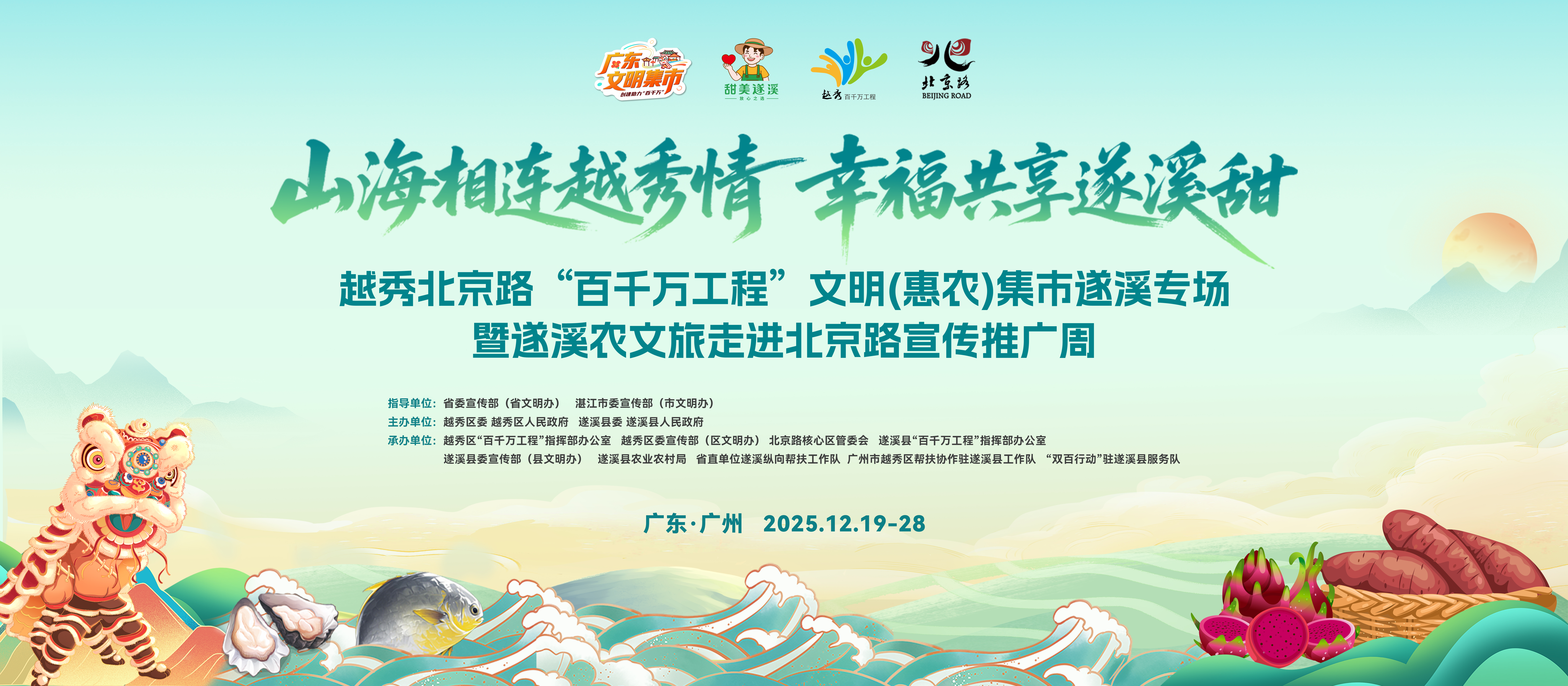在千年商都广州的脉搏之地北京路,一场跨越山海的温情相约即将上演。12月19日至28日,“山海相连越秀情 幸福共享遂溪甜”——越秀北京路“百千万工程”文明(惠农)集市遂溪专场暨遂溪农文旅走进北京路宣传推广周,将在北京路天河广场粤飨集展馆隆重举行。