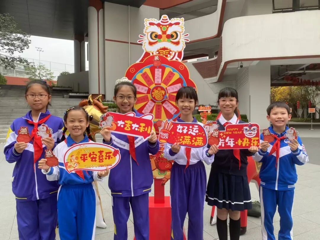 校园里祝福声此起彼伏,传递着同窗与师长的美好期许。最受孩子们欢迎的,是那盏“马年幸运转盘”:轻轻一转、指针落定,一份专属福袋便捧入掌心。小小的福袋,装满了新学期的期盼。