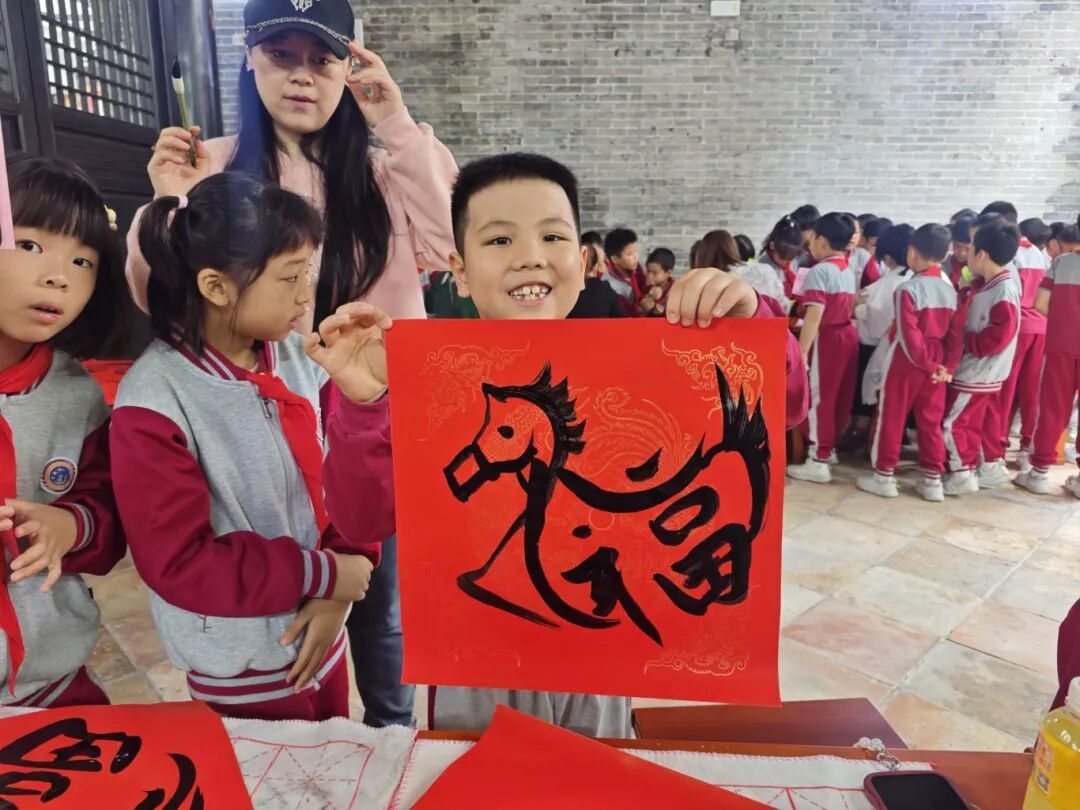 学校的校道化作年味流淌的长廊。孩子们寒假里的巧思佳作次第铺展:剪纸窗花、书法作品……马年主题的立体手工作品栩栩如生。同学们穿行其间,驻足欣赏,在同伴的巧思里感受年俗的温度。