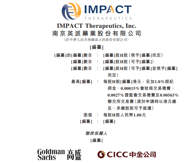 2025年9月26日,注册于江苏南京、总部位于上海的南京英派药业股份有限公司IMPACTTherapeutics,Inc.(简称"英派药业”)在港交所递交招股书,拟在香港主板挂牌上市。